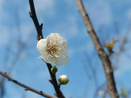 不要以为上一周的寒冷,驱散了梅花的开放。其实只要走进梅林,你会发现很多树上悄悄开放,就像无声的诉说:无论你看没有看到,我就在这里,迎着寒风,暗香浮动!