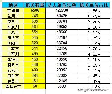 这机关单位数量最多的当然是兰州市,因为兰州市的人口最多。