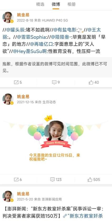 姚金易母亲的微博记录显示,她与新东方之间确实有过一段漫长的诉讼过程。在2018年刑事诉讼二审结束后,凶手被判无期徒刑,随后在2019年,姚金易的母亲提起了民事诉讼。在民事诉讼的过程中,姚金易母亲明确表示不向新东方学校主张赔偿,而是基于人道主义原则与新东方达成了和解。