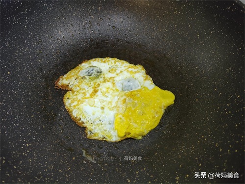 起锅烧热,放少许食用油,打入鸡蛋煎至两面金黄取出。