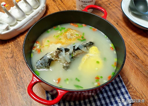 最后加入适量的盐和胡椒粉调味,放入枸杞再焖3分钟关火,上桌前撒上葱花即可。一道营养又鲜美好喝的萝卜丝鲫鱼汤就完成了。这么简单的一道鱼汤你学会了吗?喜欢的话赶紧给家人炖一锅吧!