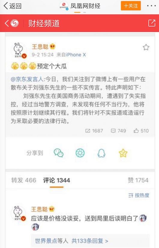 正当大家怀疑这个Liu Qiangdong是不是与刘强东撞名,娱乐界包打听、前首富公子王思聪,突然送上了一记重击:实锤,价格没谈拢。