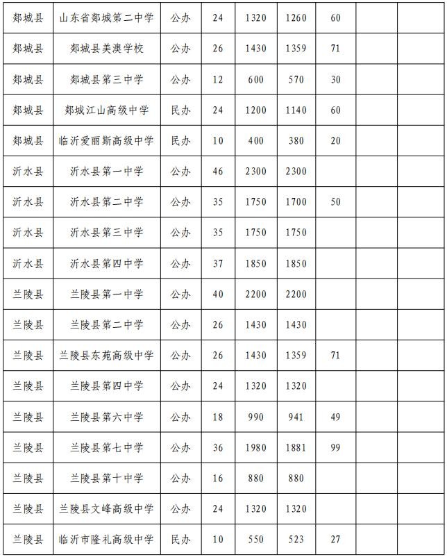 2023年临沂中考招生计划:(附招生计划表)