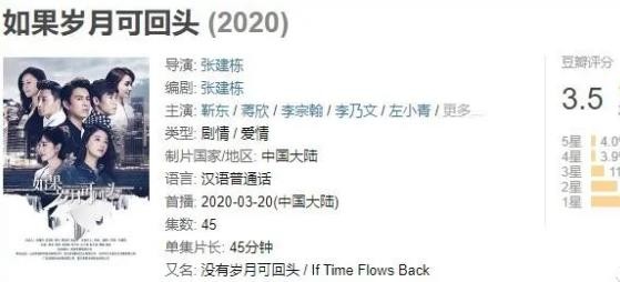 在演戏专业道路上,靳东也不复当年风光,2020年的《如果岁月可回头》,直接玩出了3.5的评分。