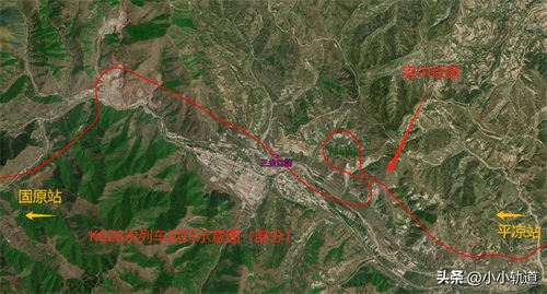 K626次列车平凉站至固原站段,中间三关口站运行示意图。