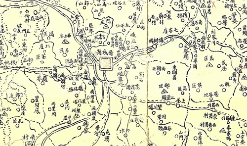 全图对晋城县村庄、道路、乡镇、学校、河流、乡界、县界等绘制标注详细,全图范围四至,请看图片。图左上附晋城县城关街巷图。图中地名村庄标注十分丰富,很多地名已经消失或流变。