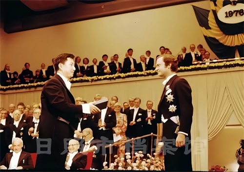 1976年,在瑞典斯德哥尔摩,丁肇中(左)出席诺贝尔奖颁奖典礼
