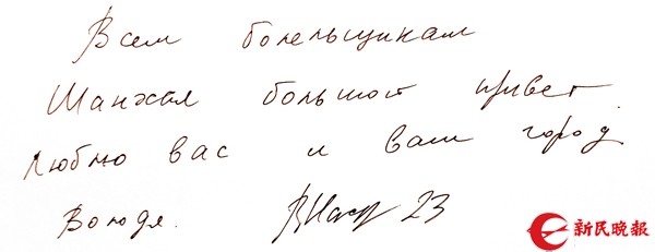 记者请他给读者和球迷们写一段文字留言,签下名字之后,瓦洛佳特意在后面加上了数字23,这是他当年效力申花时的号码。他甚至还模仿起比赛换人时的广播,用中文喊道:“23号瓦洛佳上!”“24号莎萨上!”