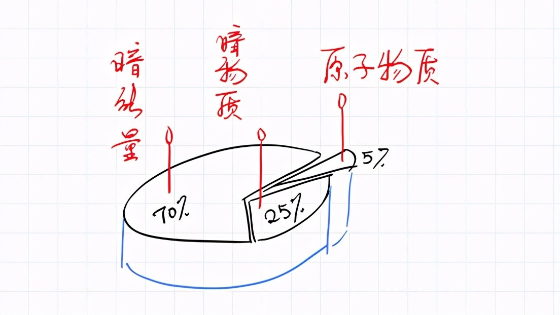 世界是由原子组成的,费曼认为这是极其重要的一句话。现在我想问大家的问题是:这个世界真的是由原子组成的吗?或者说,我们通常意义上熟悉的原子、分子,以及原子、分子所组成的物质占宇宙当中物质的多少呢?这个问题很难从理论的角度去回答,但是宇宙学观测已经给了这个问题一个答案:我们通常所熟悉的原子、分子所组成的物质只占宇宙总物质的大约5%,其他25%是一种所谓的“暗物质”,而更多的70%被称为“暗能量”。