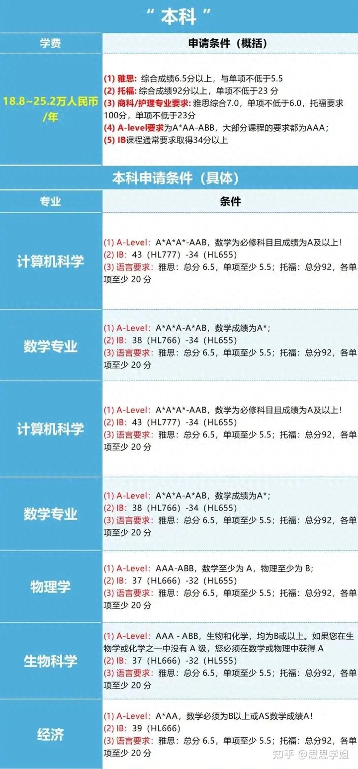 (4) A-level要求为A*AA-ABB,大部分课程的要求都为AAA;
