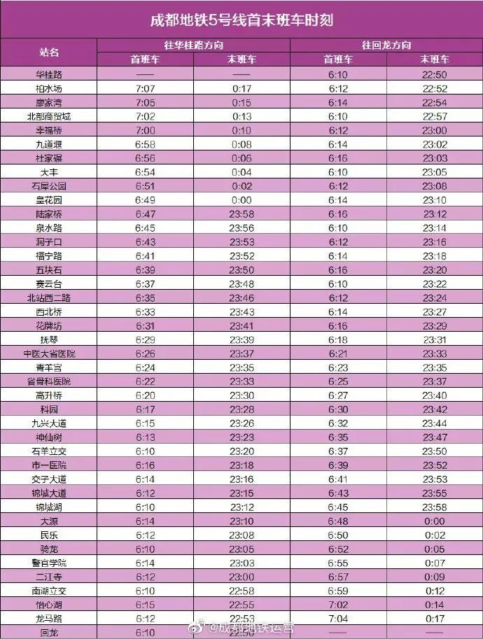 最新!赶紧收藏成都地铁最新首末班车时刻表 2025-10-15 12:34 点击: 来源:迪趣网 摘要:最新!赶紧收藏成都地铁最新首末班车时刻表 近日 成都地铁运营公布了 成都地铁全线网各线路 最新首末班车时刻表 各位小可爱一定要看准首末班车 合理安排时间出行 ↓↓↓ -END- 来 最新!赶紧收藏成都地铁最新首末班车时刻表近日成都地铁运营公布了成都地铁全线网各线路最新首末班车时刻表各位小可爱一定要看准首末班车合理安排时间出行↓↓↓-END-来源:成都发布 相关标签: 上一篇:一天一个成语:不置一词 下一篇:230 中国20个最适合旅游的地方,你去过哪几个呢?