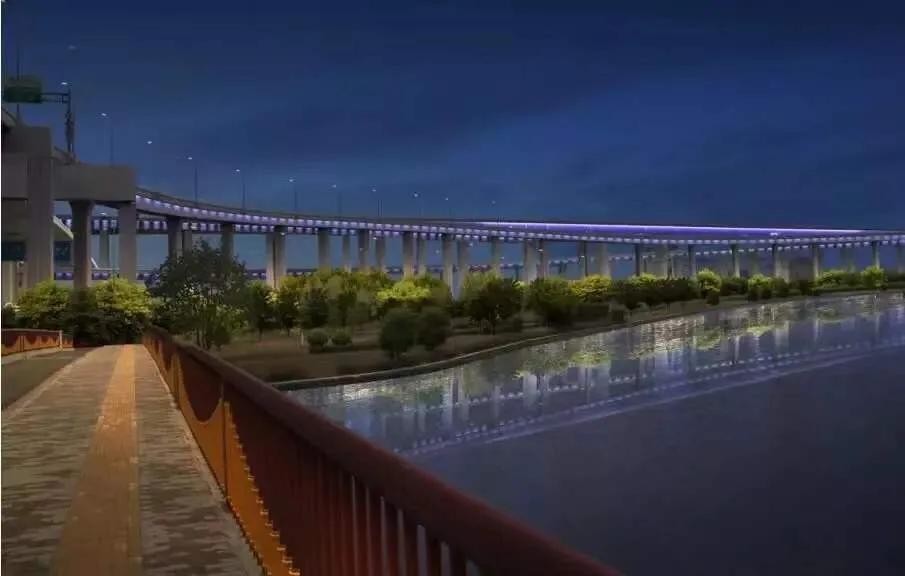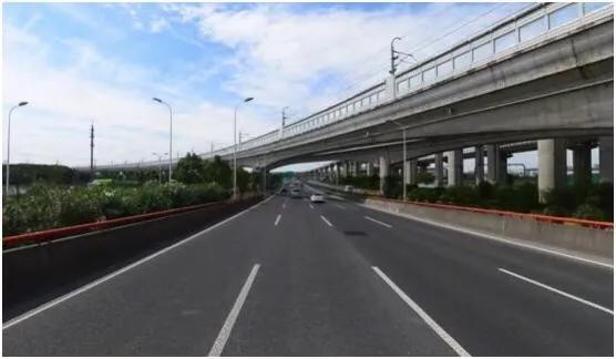 度假区高架路2015年建成通车,北起申江立交,东至度假区西入园大道,主线长6.3km,标准宽度24m,全桥面共计19.7万平方米。高架道路采用双向6车道,全线设置,沔北路、秀浦路、S2三对上下匝道。