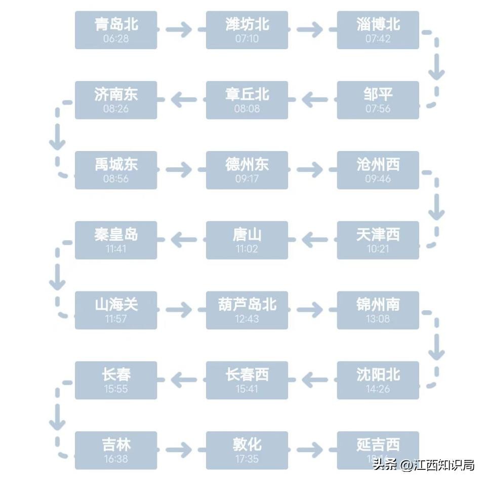 列车途经省份:山东省、河北省、天津市、辽宁省、吉林省等5省市。