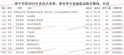 济宁学院2022年省内专业最低录取分数线、位次