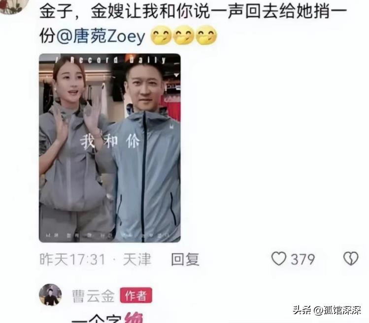 曹云金和唐婉两人暗戳戳的互动,也进一步证明两人的关系在逐渐缓和。母亲节的同框庆祝,甚至六月在曹云金拍摄视频中,有粉丝留言,让他回去给金嫂带一份美食,并@了唐菀。曹云金也没有表现出抗拒,而是幽默评论:“一个字绝”。