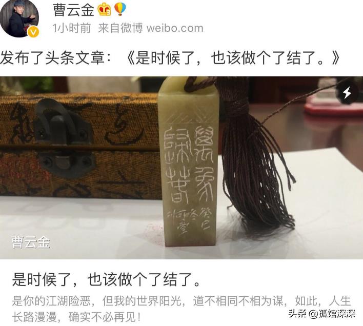 郭德纲给曹云金扣这么一个大帽子,曹云金也是丝毫不留情在微博晒出6000字的收徒“内幕”称:“是时候了,也该做个了结了。”郭德纲也不退步,写7000字长文《天涯犹在,不诉薄凉》反击。这段师父情缘闹得沸沸扬扬。最后曹云金的确再没有回过德云社,而是自己开办了听云轩。