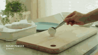 我们在托盘上扑上烘焙纸,再撒入适量糖粉