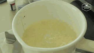 温度到达后往里倒入刚才玉米淀粉和水的混合物