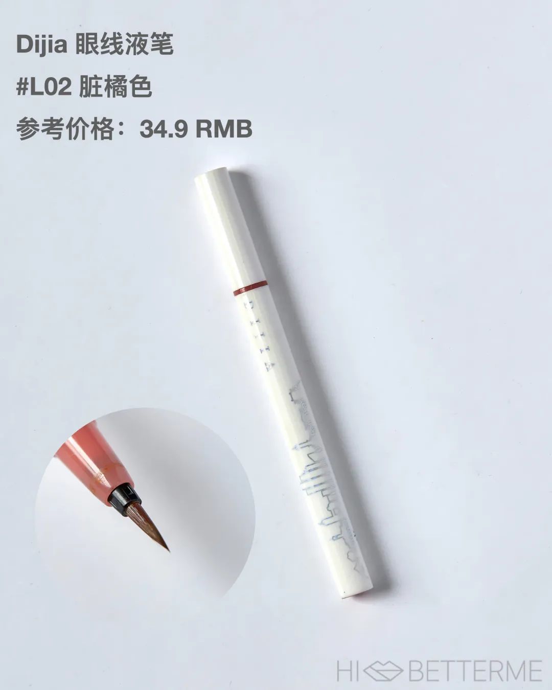 彩色眼线液笔是我每年夏天一定要有的眼妆单品,今年 Dijia 的这个系列蛮火的,我挑了一只不容易出错的脏橘色来试试。