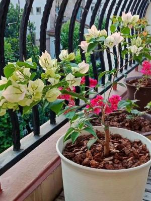 三角梅又叫光叶子花,有时候开花非常的茂密,都看不见叶子的那种。养三角梅需要注意,光照一定要足,否则就不容易开花了。