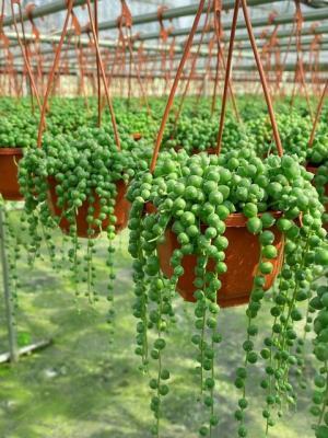 这也是一款多肉植物,但是相比较紫玄月,它的叶片要更圆,像珍珠一样。