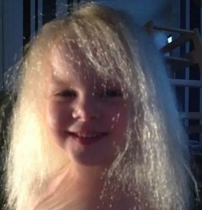 英国《太阳报》最近也报道了5岁女孩 Lyla-Grace Barlow 的案例,她的父母与两个姐妹都是偏深色直发。(照这张照片前估计梳了两个小时脑袋哈哈哈)