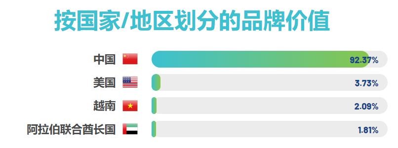 统计分析,在全球前25房地产品牌中,中国的房地产品牌价值总和最高,占92.37%。