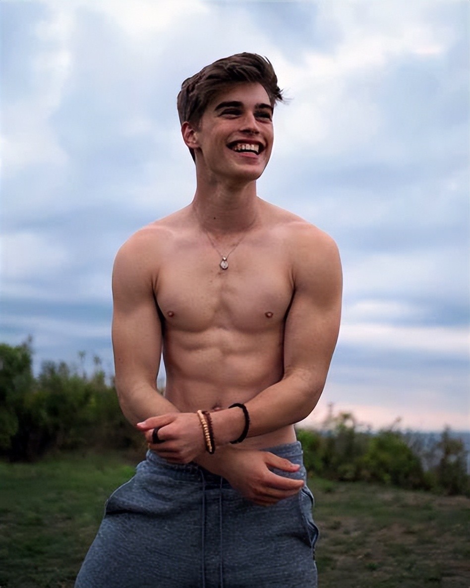 莫里茨甚至在最近视频中分享了自己穿着红色泳裤站在Hollister前的照片,清晰结实的肌肉线条美得令人窒息。
