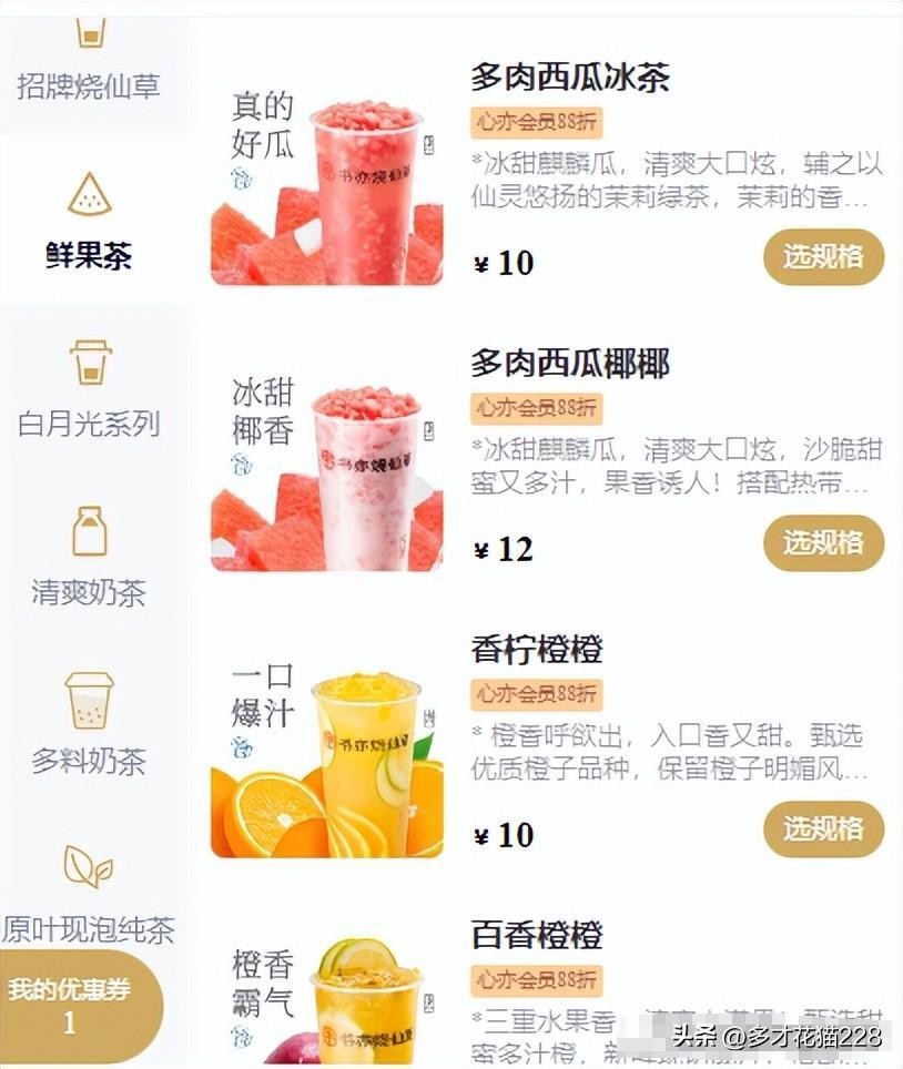 从4月底开始,书亦烧仙草就在不断下调产品价格,新推出的果茶类产品定价均在10元左右,相比之前降幅达3-6元之多。