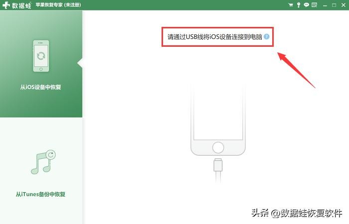 1、首先,下载并安装数据蛙苹果恢复专家到您的电脑上,再通过苹果的USB线将iOS连接到电脑。