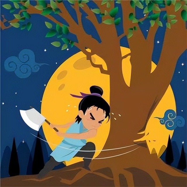 也是在很久以前,有一位名叫吴刚的木匠。他技艺高超,但因一时的过失触犯了天庭的规矩,结果被贬到月宫,成为了一个永无休止的囚徒。。