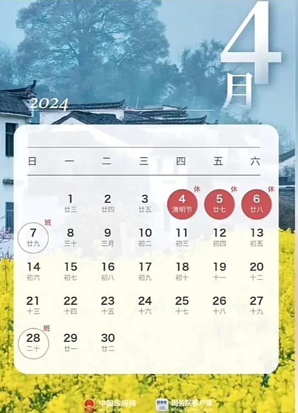 春节过后的第一个法定假期即将来临!清明节假日期间,从4月4日至6日,共计三天,让我们好好利用这个难得的休息时间,放松心情,享受生活吧!
