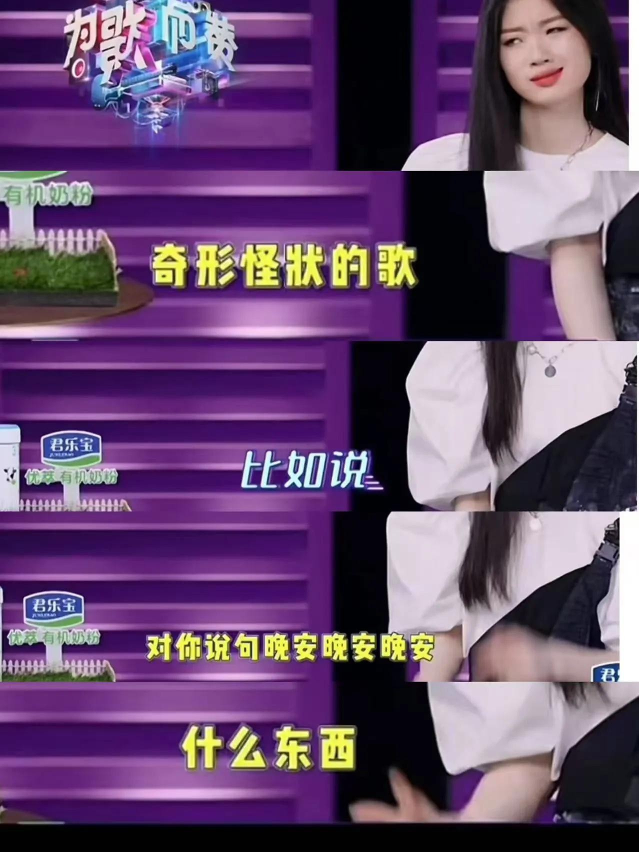 在《为歌而赞》后台的一段采访中,单依纯更是直言不讳的嘲讽了当时兴起的一首网红歌曲《晚安》,凌厉的言语配上极度嫌弃的表情更是说明了单依纯对待这种毫无营养的网红歌曲的态度。