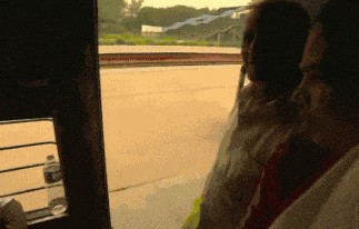 98、一个刹车没刹住,把另一半给挤下去了,哈哈