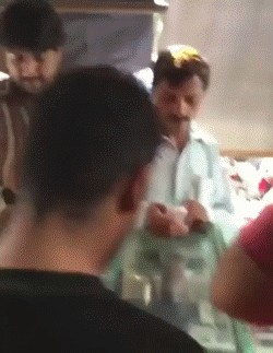 1、搞笑动图,大爷这摊摆的真随意,看着有种自由的感觉!