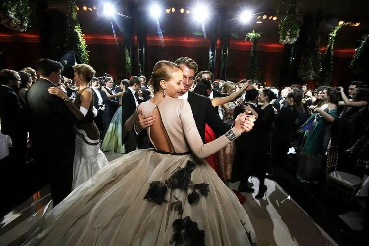 在舞会上,男生会穿着白衬衫和白色或黑色的燕尾服,配上领带或领结,头发整齐梳理,身上淡淡散发着古龙香水的香气。