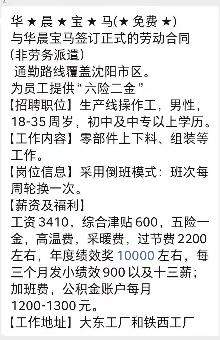 说一说沈阳华晨宝马的待遇工资是多少?和沈阳宝马在沈阳的地位