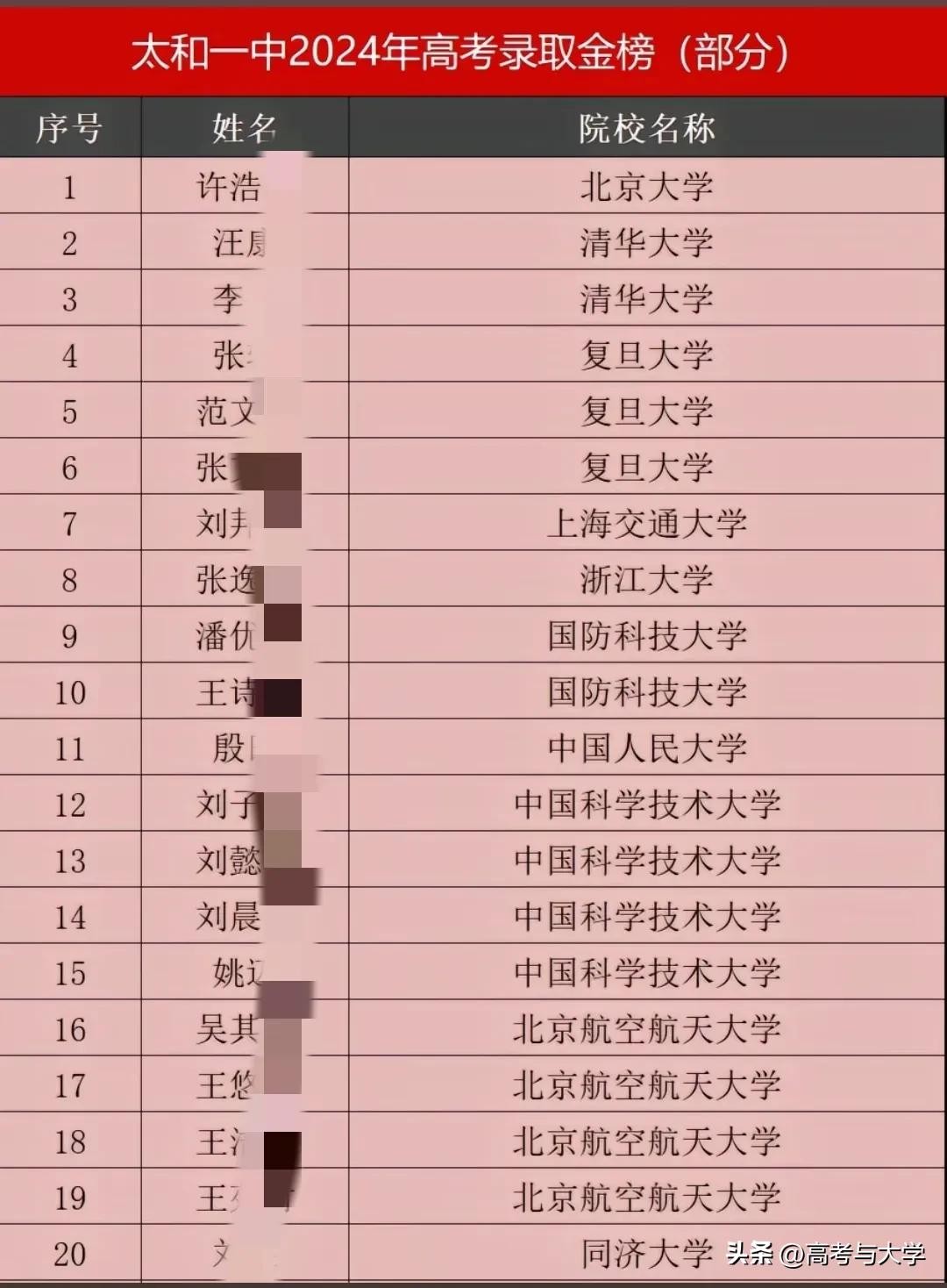 安徽省太和县一中和太和中学2024年高考清北7人,985院校169人