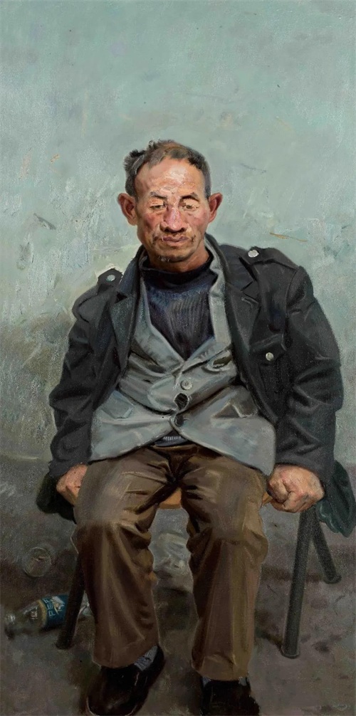 忻东旺的油画取材大多是最普通的农民、农民工、城市里最普通的保安等各色小市民,但是通过他对人物造型和表情的合理的艺术夸张,通过他对人物的形象特征、内在心理活动、外在精神面貌非常精准到位的捕捉,画面人物生动传神,具有极强的视觉震撼力!