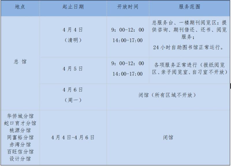 清明假期将近,有计划假期去南山图书馆的读者,可留意以下清明假期开放时间: