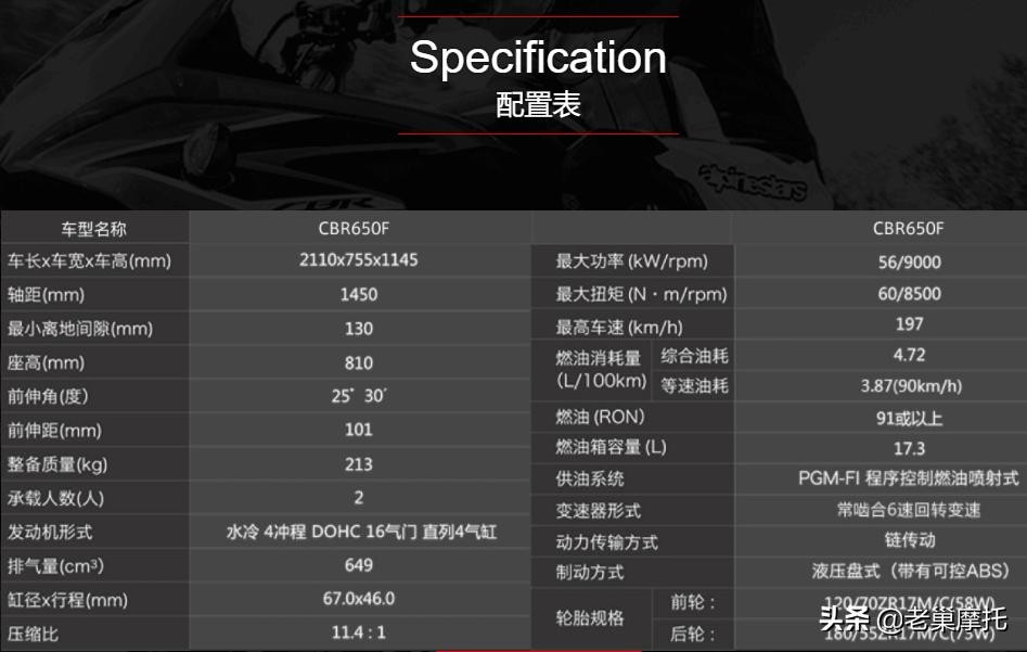 本田cbr650f极致运动感的构造,给您与机械融为一体的感受。极致运动感的构造,给您与机械融为一体的感受。车架采用椭圆截面的钢制双管构造,配以造型简洁的发动机,让直4机也能实现苗条的车身造型。另外所有主要零件与骑手的座位均配置在车体重心的位置,充分实现重量的集中化。