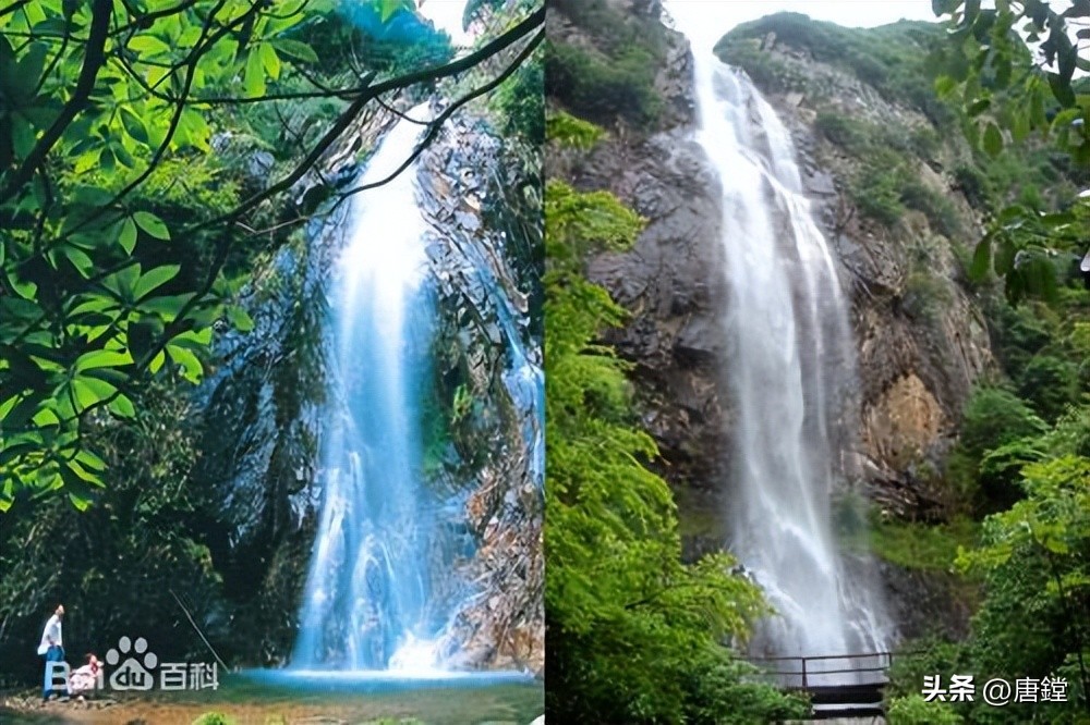其他两条瀑布的水量稍小,落差约30米,同样呈现一级瀑布的形态,瀑面宽约2米,水流飞泻而下。它们的底部也有一个潭,潭的面积约为100多平方米。
