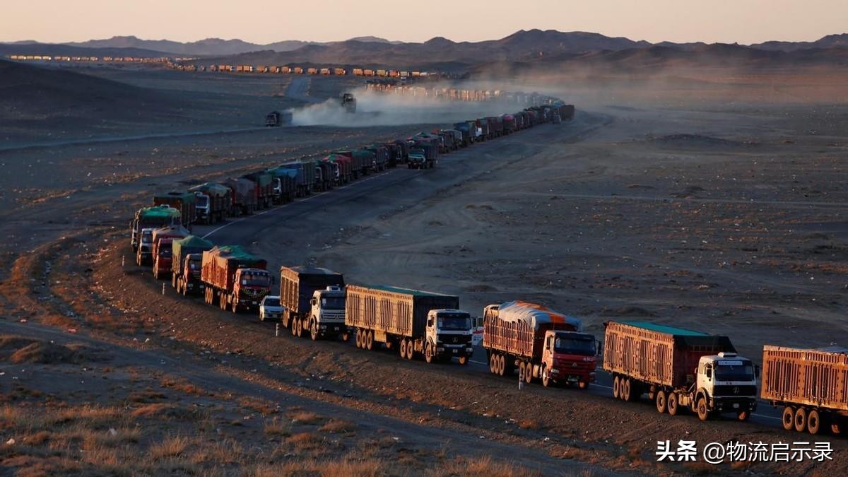 蒙古国运煤卡车排成一条蜿蜒的黑色长龙(图片来自网络,侵删)