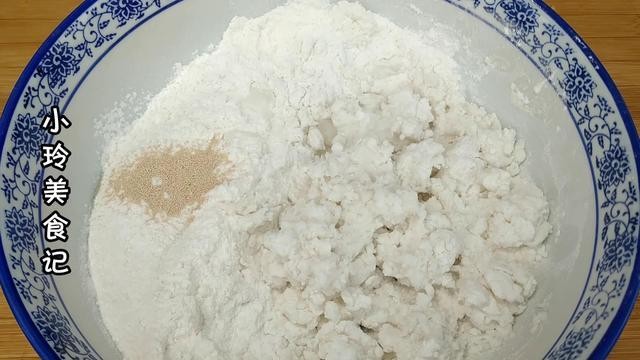 步骤一:首先大碗中倒入400克的糯米粉,加入30克的白糖,一半用150毫升的开水烫面,面晾至温热另一半加入4克的酵母粉,用130毫升的凉水和面,一边倒一边搅拌,下个揉一个软硬适中的面团,盖上保鲜膜,醒发40分钟左右