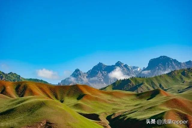 在祁连山北麓的山脚下,有一片水草丰美的草原——祁连山草原。每当夏季来临,祁连山脚下就像铺了一张大绿毯,一群群牛羊点缀其中,一丛丛花儿迎风绽放。远处的祁连山白雪皑皑,直耸天际,美得像一幅画。