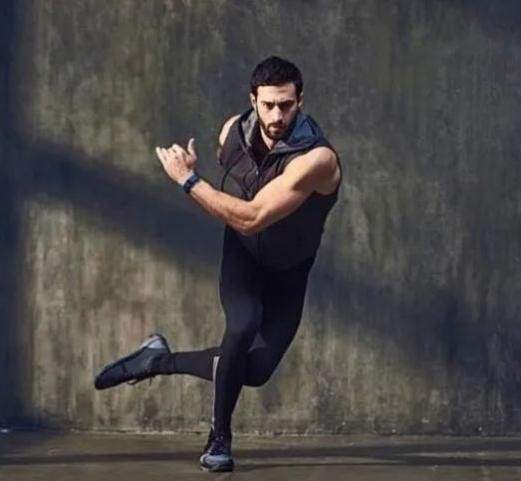 做出伏地挺身的准备动作,然后轮流弯曲双脚,直到膝盖碰到手肘,动作要像在跑步一样快,可以训练到全身肌肉。