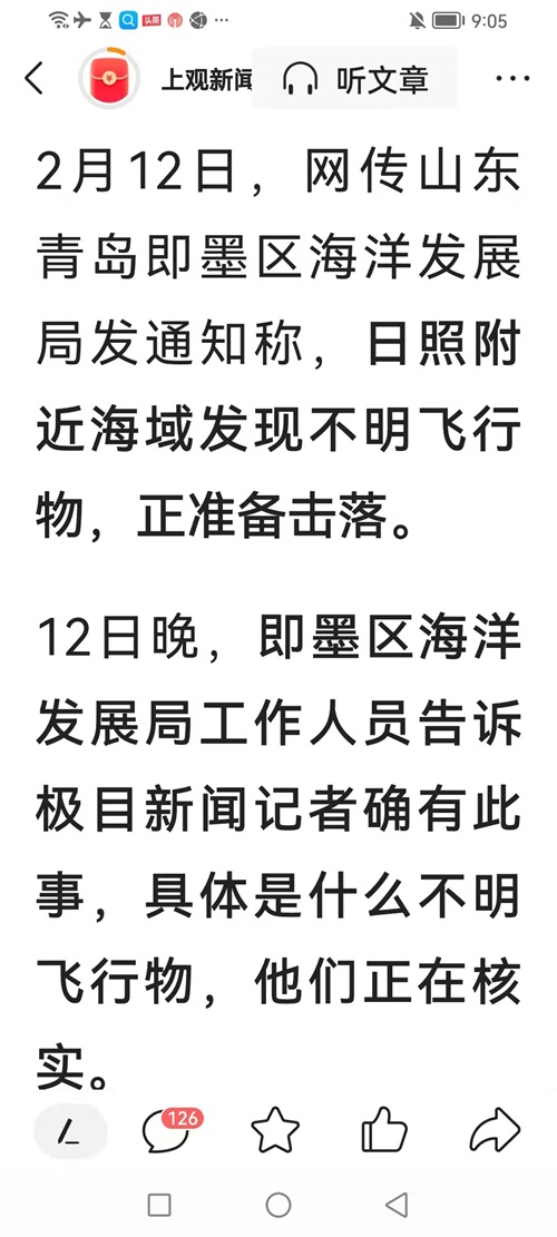 官方表示,正在核实山东不明飞行物是什么?