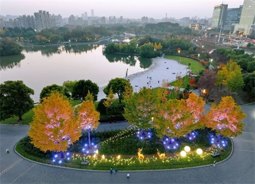 如果说大多数时候,大宁公园给人的印象是绿意盎然,那初冬的这里便是沉稳、松弛的,在往日深深浅浅的绿色中,增添了银杏黄、枫叶红等“美拉德”色系,温暖且治愈。
