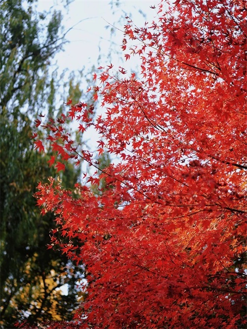 红枫抹冬妆,“枫”景伴冬来。一些熟悉的风景因为有了季节的妆点,再次变得惊艳起来。沿着红枫大道漫步,无需刻意寻找,一转弯、一抬头,便是满眼的妖娆。人在其中,似是画中人。