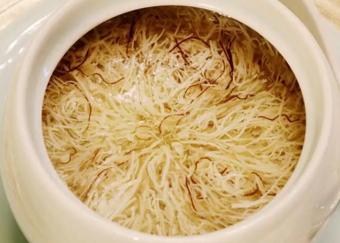 这款美食对于刀工的要求极其苛刻,豆腐切丝这道工艺相信大家应该在很多电视上看过,而这道美食就需要这样的工艺作为基础。